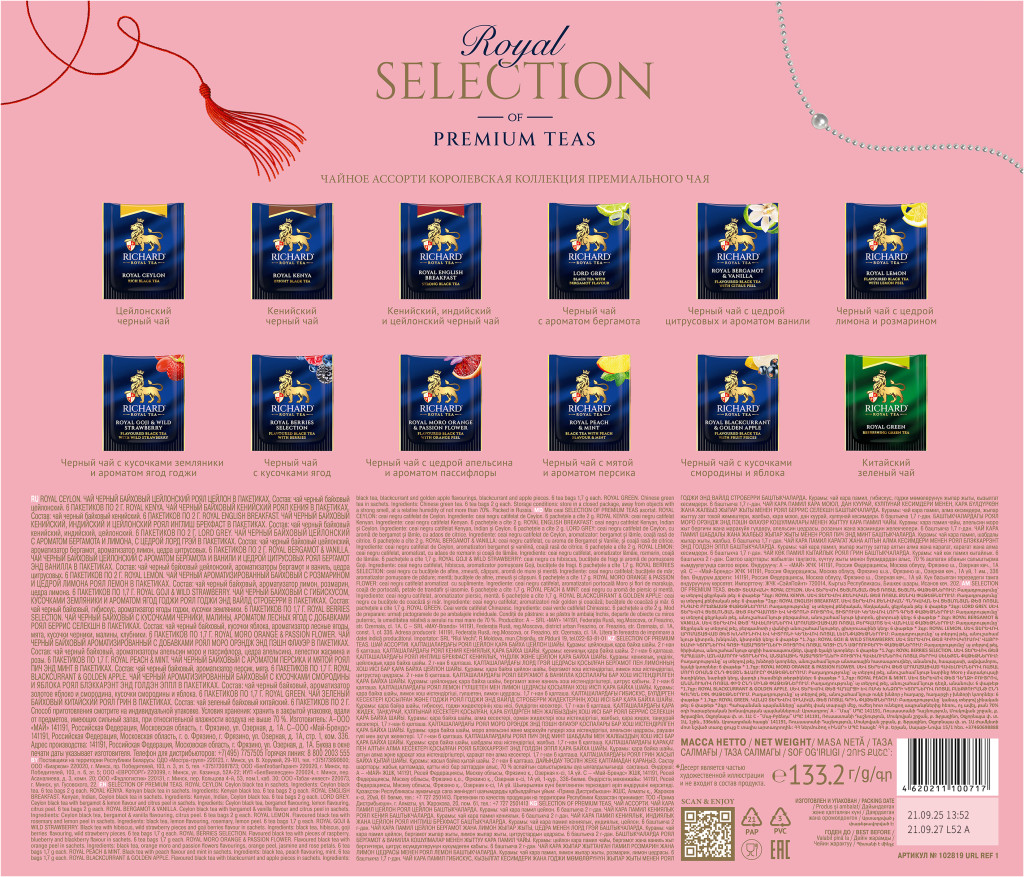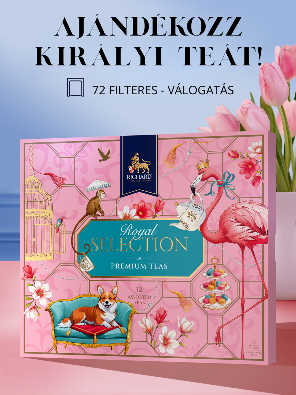 A Richard Royal Tea Kollekció legkelendőbb fekete- és zöld teák válogatása egy mutatós dobozban, mely 72 filtert tartalmaz. Ez egy értékes ajándék és kiváló összeállítás egy nagy társaságnak, barátaidnak, családtagoknak, szeretteidnek, főnöködnek. Vagy lepd meg magadat ezzel a teaválogatással, de esetleg kávézódban is megállja helyét a pultodon.
