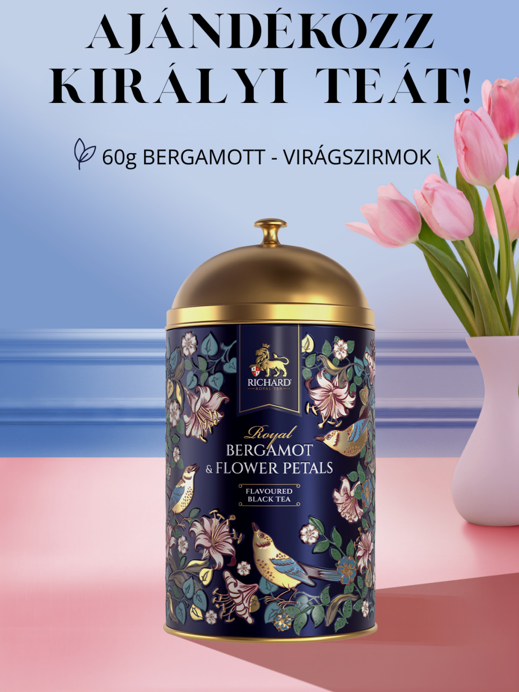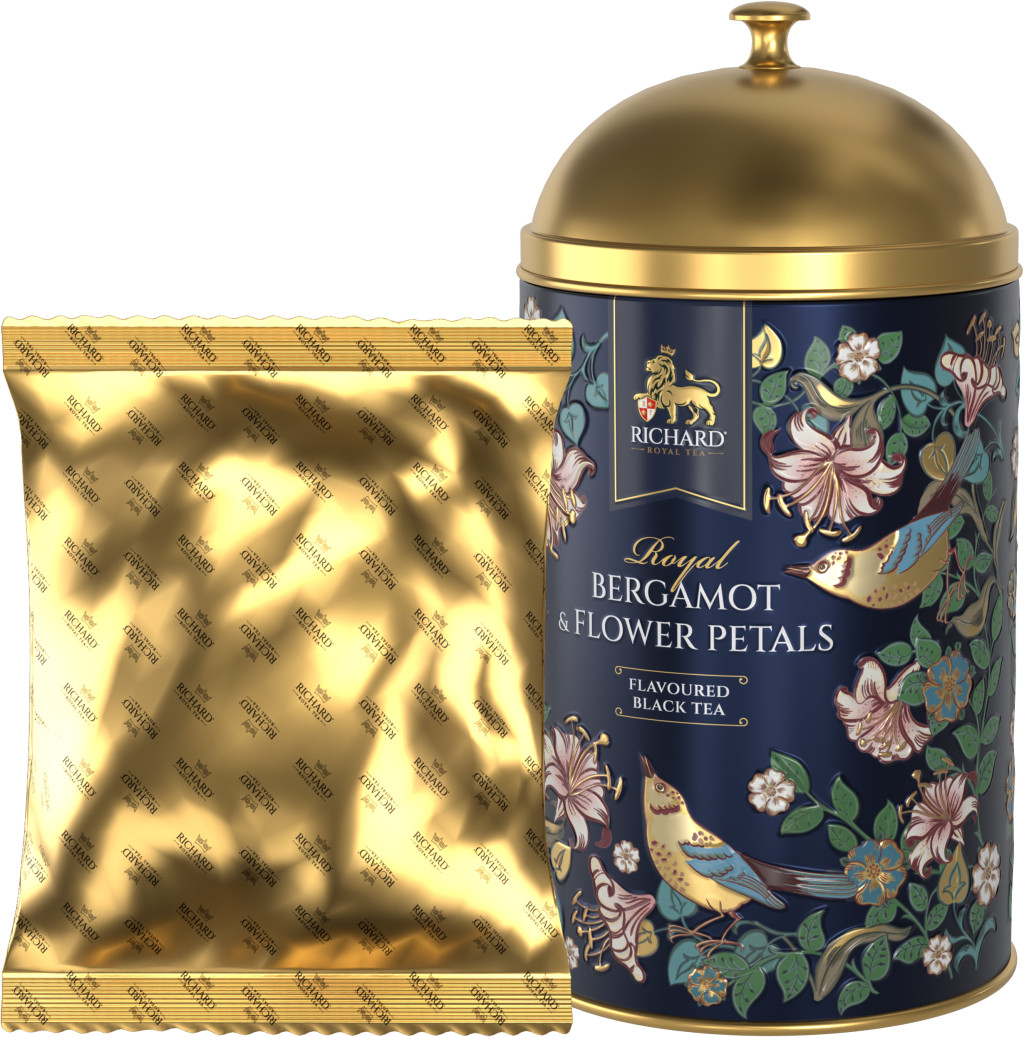 Richard Royal Bergamot & Flower Petals ízesített, szálas fekete tea, fémdobozban 60 g - BLUE